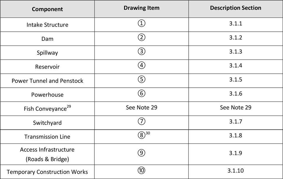 Table 22. The project components are shown in Figure 29 and Figure 30 and described in more detail as per