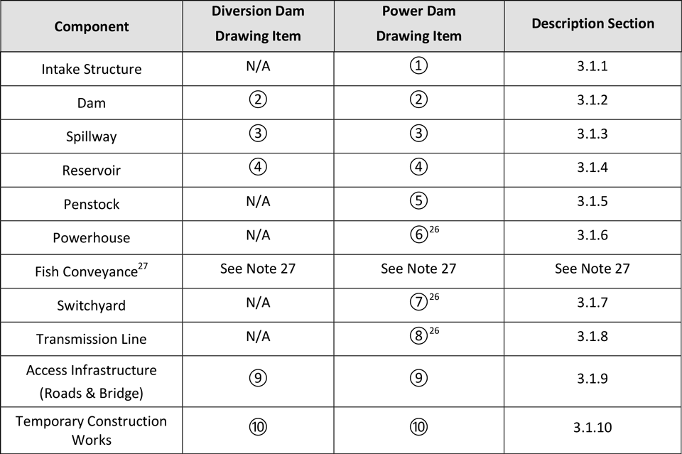 Table 22: Slate Rapids Dams Major Project Components
