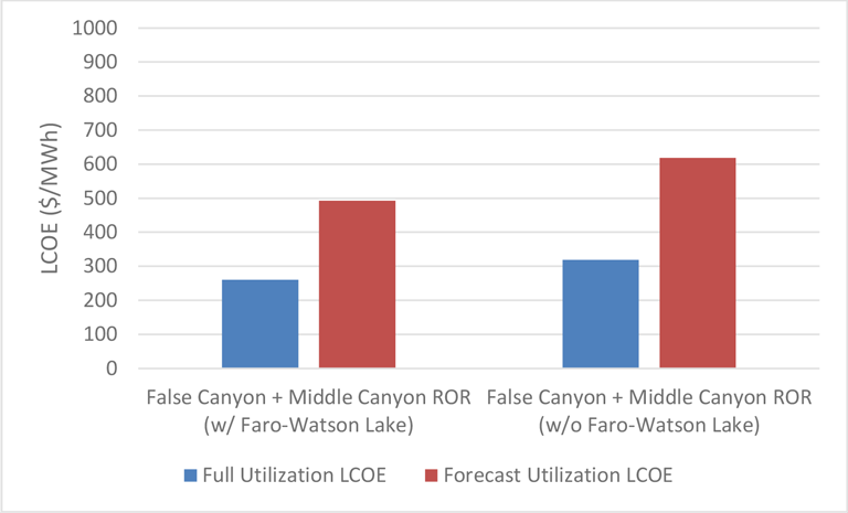 Figure 28: False Canyon + Middle Canyon ROR LCOEs