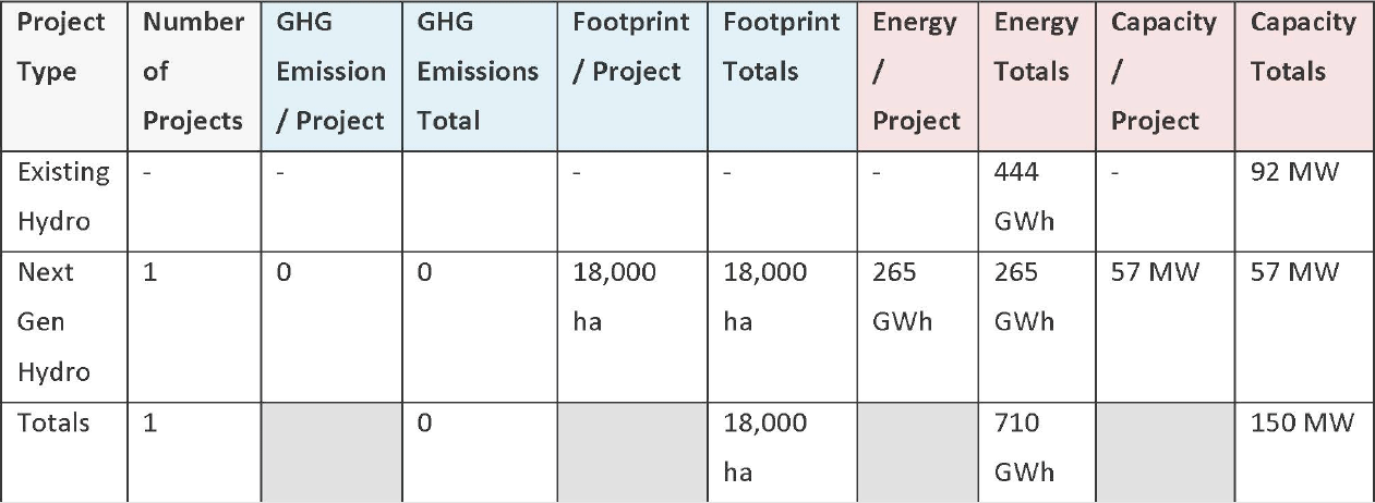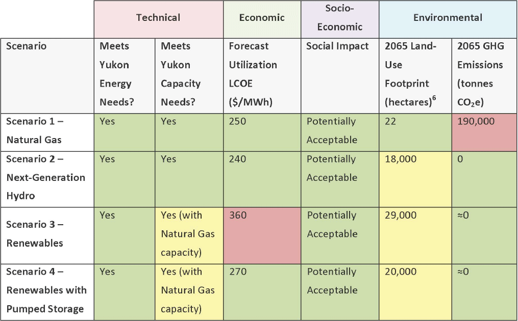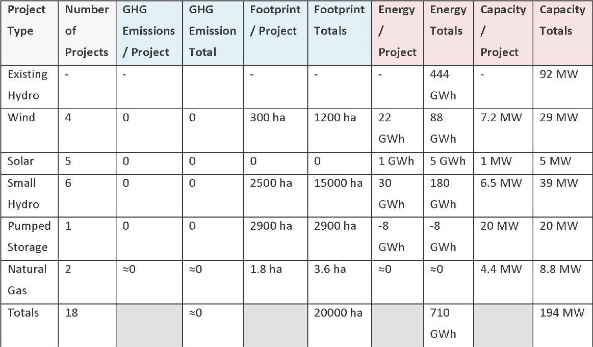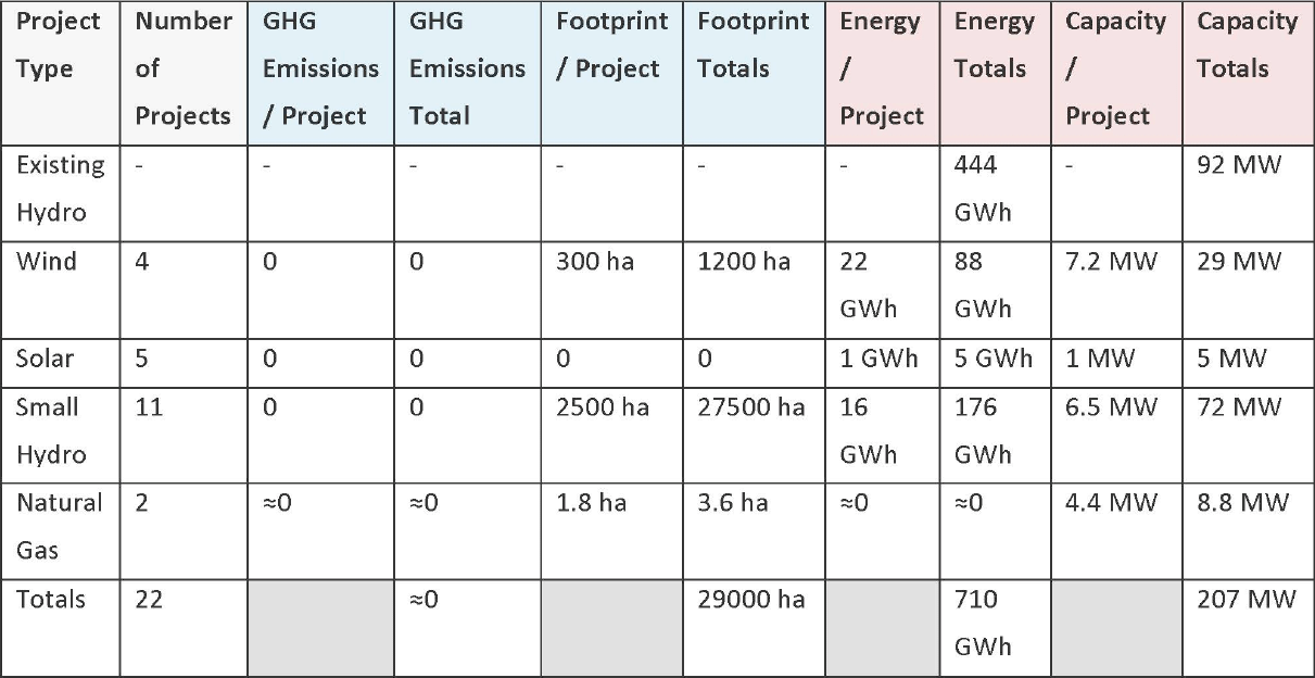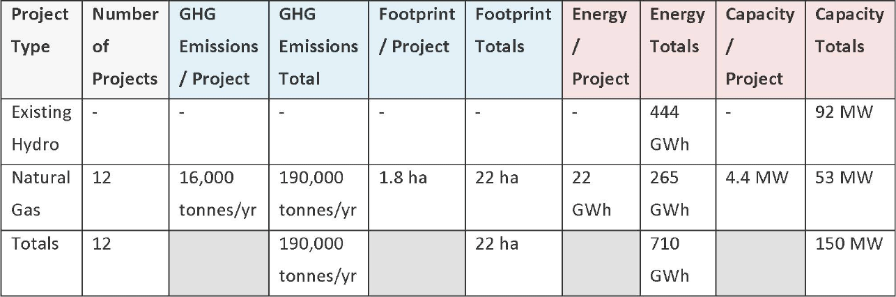 All tables from Putting Next Generation Hydro in Context – Other Solutions to Meet Yukon’s Long Term Energy Needs.